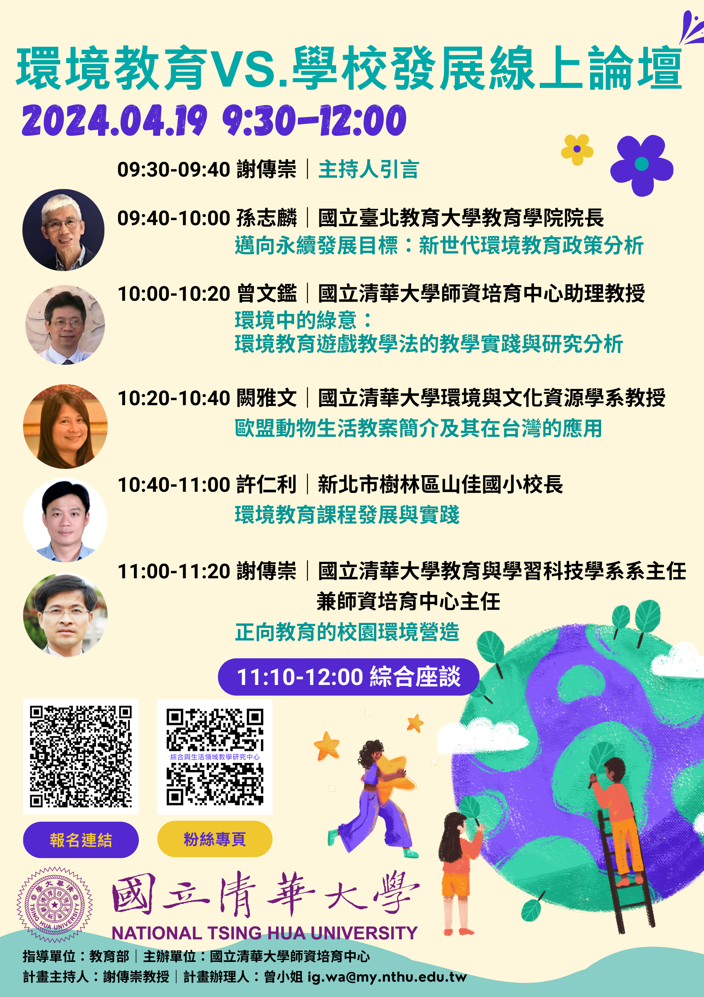 一、論壇以「環境教育 VS.學校發展」為主題,環境教育已成為教育中重要的一環,學校融入多科性課程、戶外教育,提升學生環境素養和批判思維,促進永續發展目標的實現。