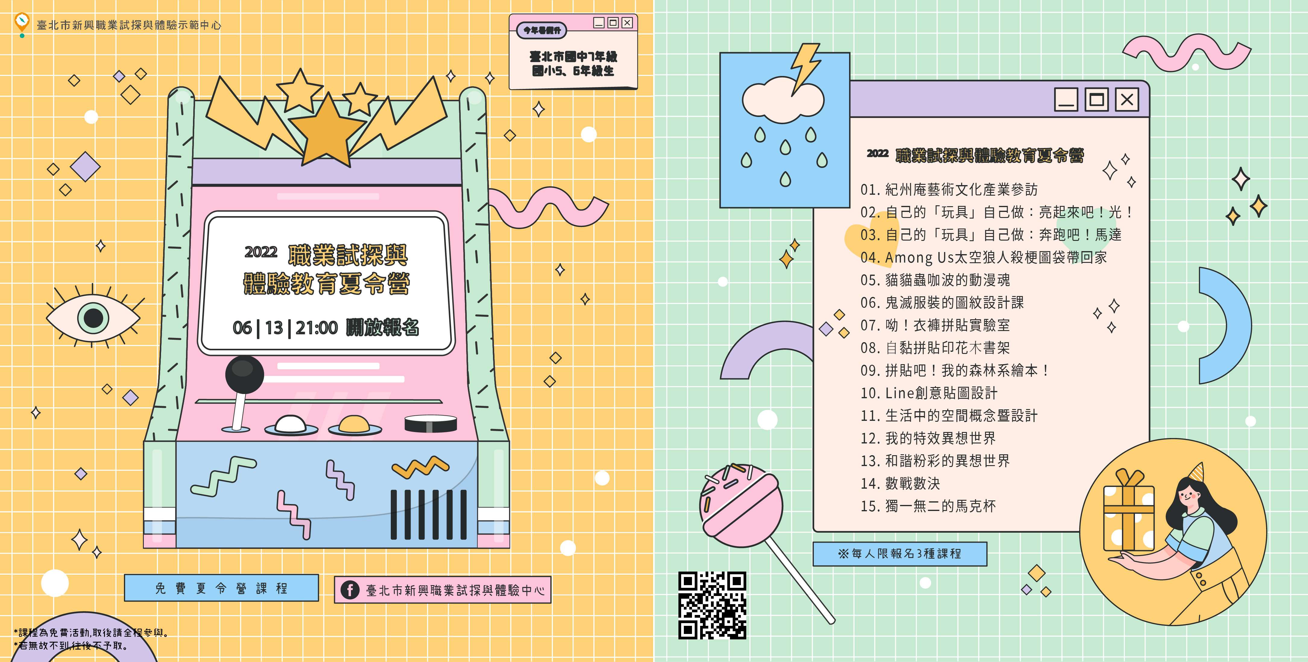 一、為增進本市學生對職業與工作世界之認識,提供學生職業 試探與興趣探索之機會,本市新興試探與體驗示範中心於 今年暑假規劃辦理職業試探與體驗教育夏令營。