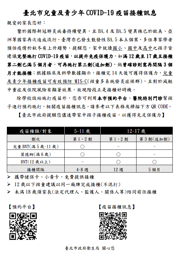 【臺北市政府提醒您儘速帶家中孩子接種疫苗,以獲得充足保護力】
