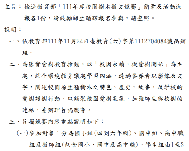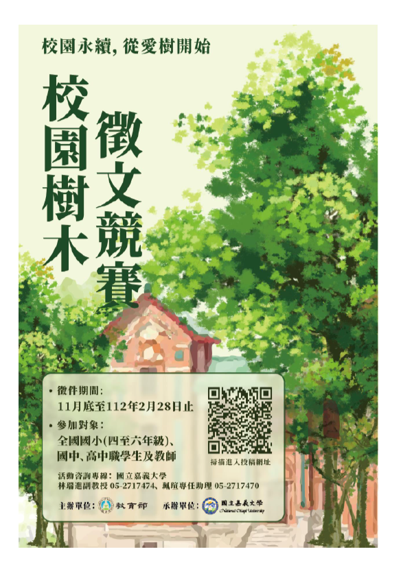 本案因前次海報之日期誤植,協助轉知此更正版海報, 並鼓勵校內師生踴躍報名參與,112年2月28日截止收件, 競賽內容詳參前函及簡章。