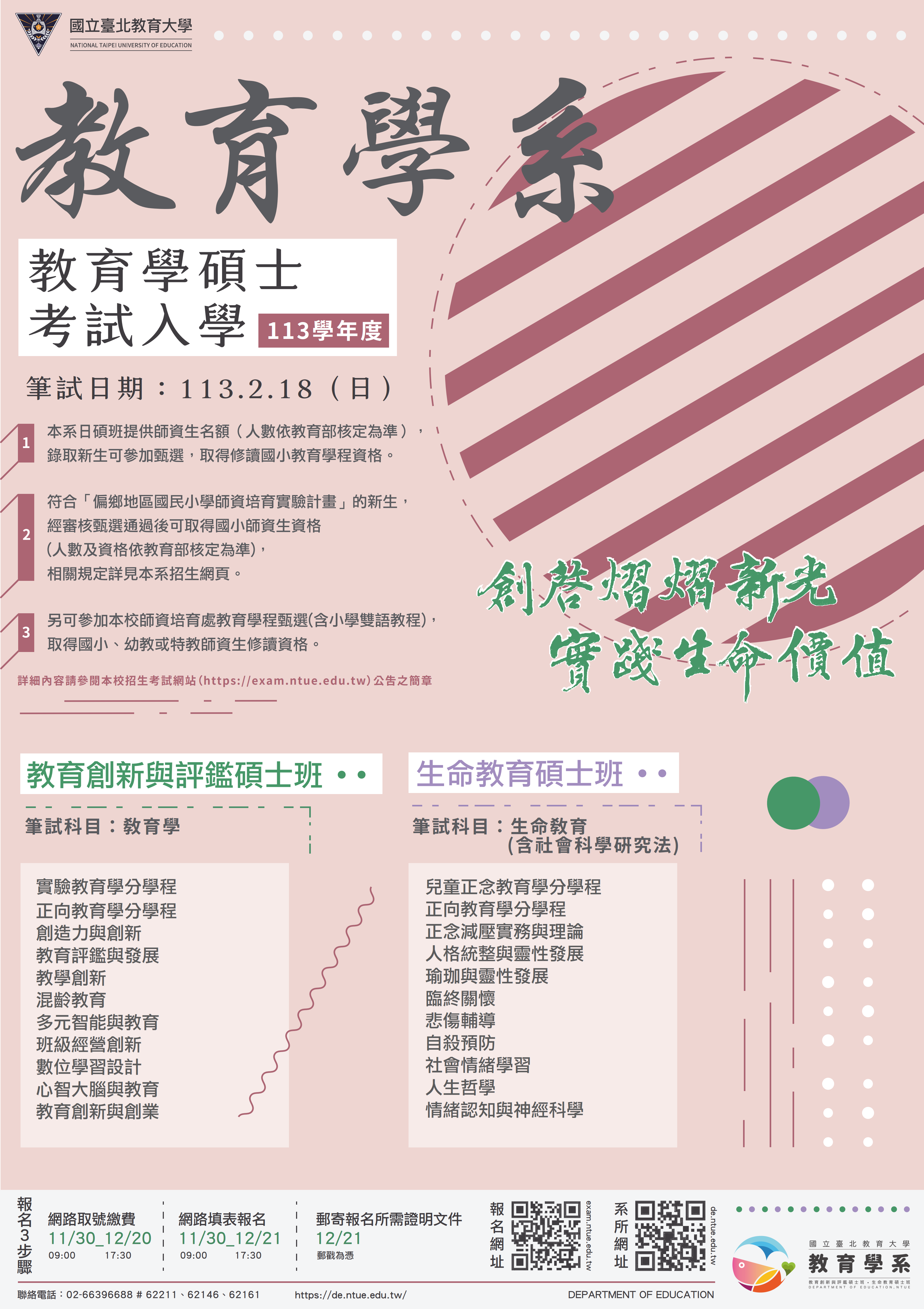 六、檢附教育學系113學年度考試入學招生海報乙份。