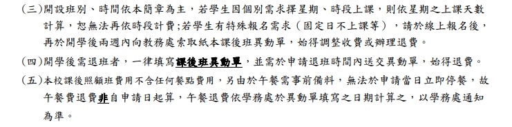 三、班別與收費:(一學期費用收取以 15 人為基準,實際金額會於第二階段加退選結束、報名人數確認後進行調整,以繳費三聯單金額為準)