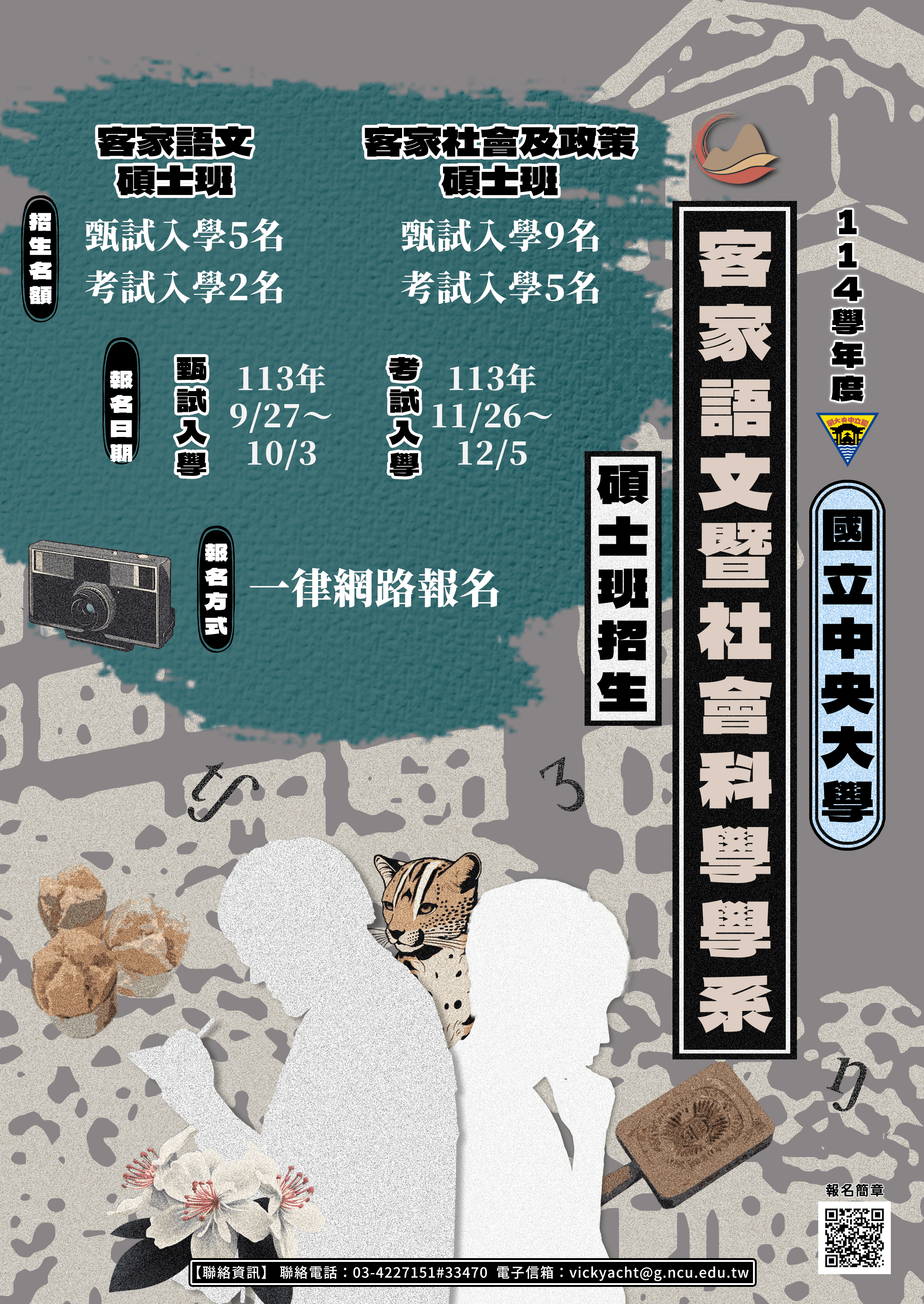 (三)招生名額:客家語文碩士班5名、客家社會及政策碩士班9名。