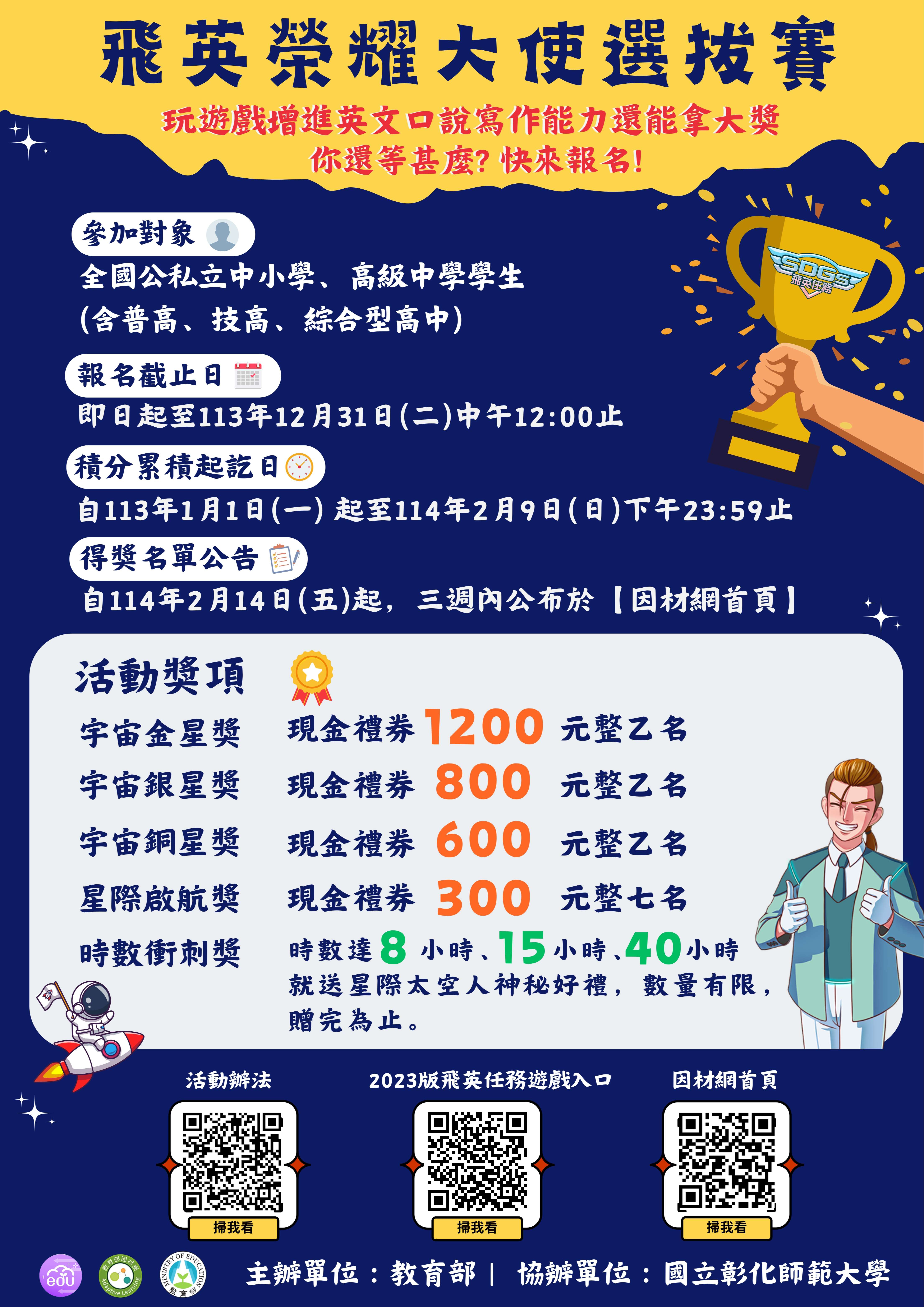參賽對象為全國公私立中小學、高級中學(含普高、技高、 綜合型高中)學生。