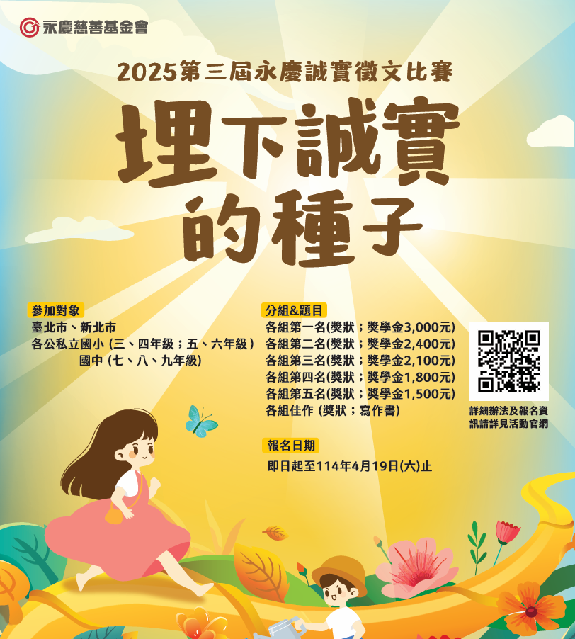 1、區賽: (1)收件:即日起至114年4月19日(星期六)。 (2)評選:114年5月3日(星期六)起至114年5月11日 (星期日)。 (3)公布:114年5月19日(星期一)。