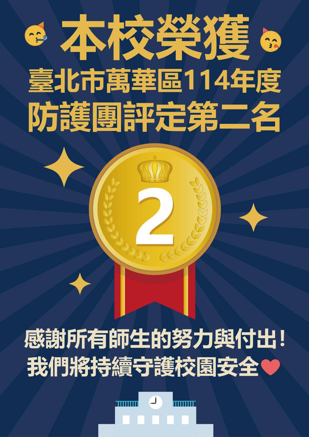 恭喜本校榮獲臺北市萬華區114年度防護團評定第二名