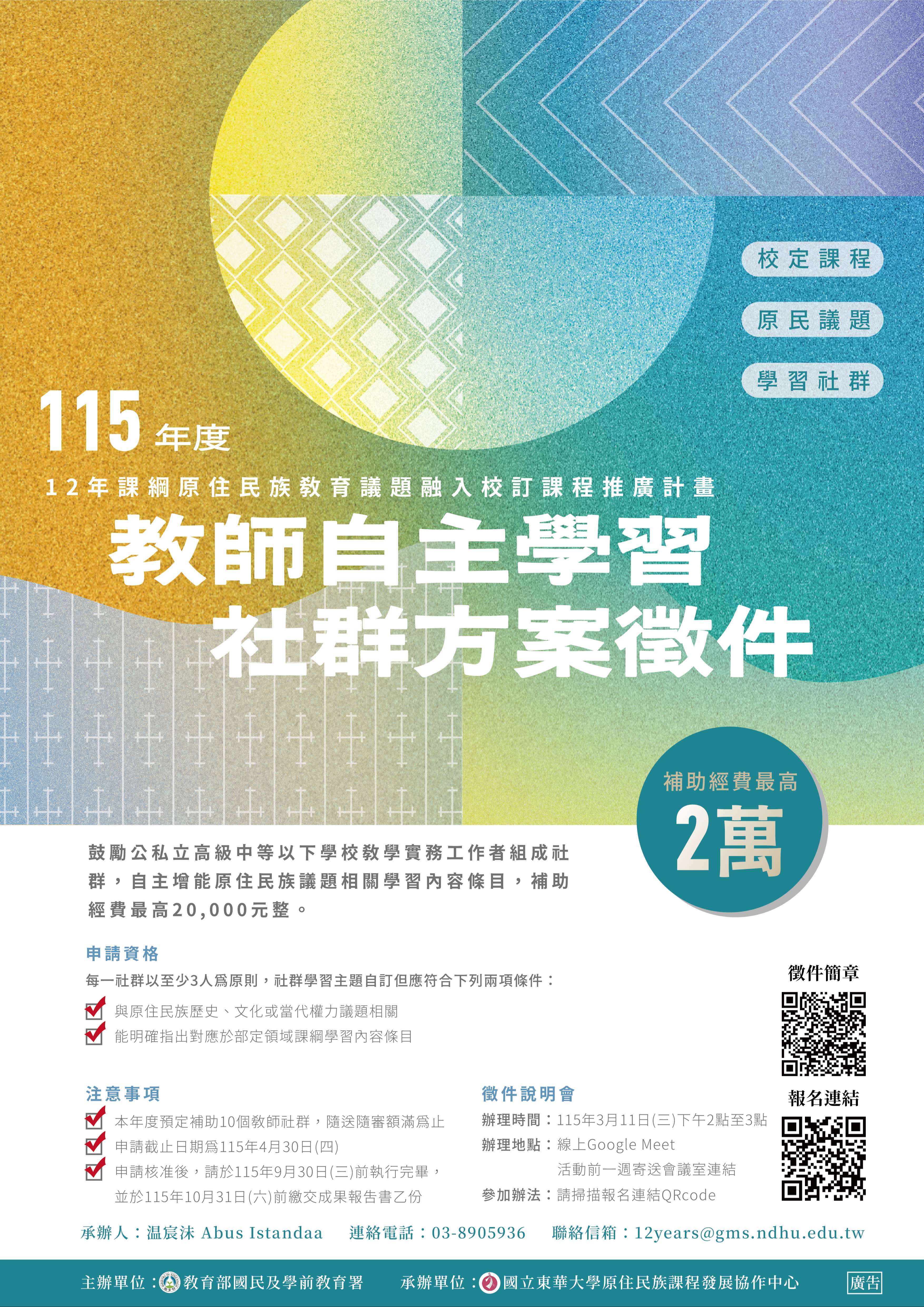 (五)教師自主學習社群說明會 1、時間:115年3月11日(星期三)下午2時至3時。