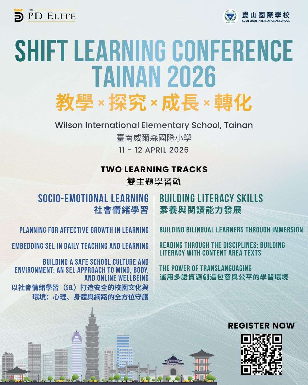 本次研習邀請國際級講師採英語授課,其中兩場提供雙語 支持,規劃兩大主題學習軌,包括「社會情緒學習 (Social-Emotional Learning)」及「素養與閱讀能力發 展(Building Literacy Skills)」等議題,透過多場工 作坊與實務交流,深化教師對學生學習與教學策略之理解 與應用。