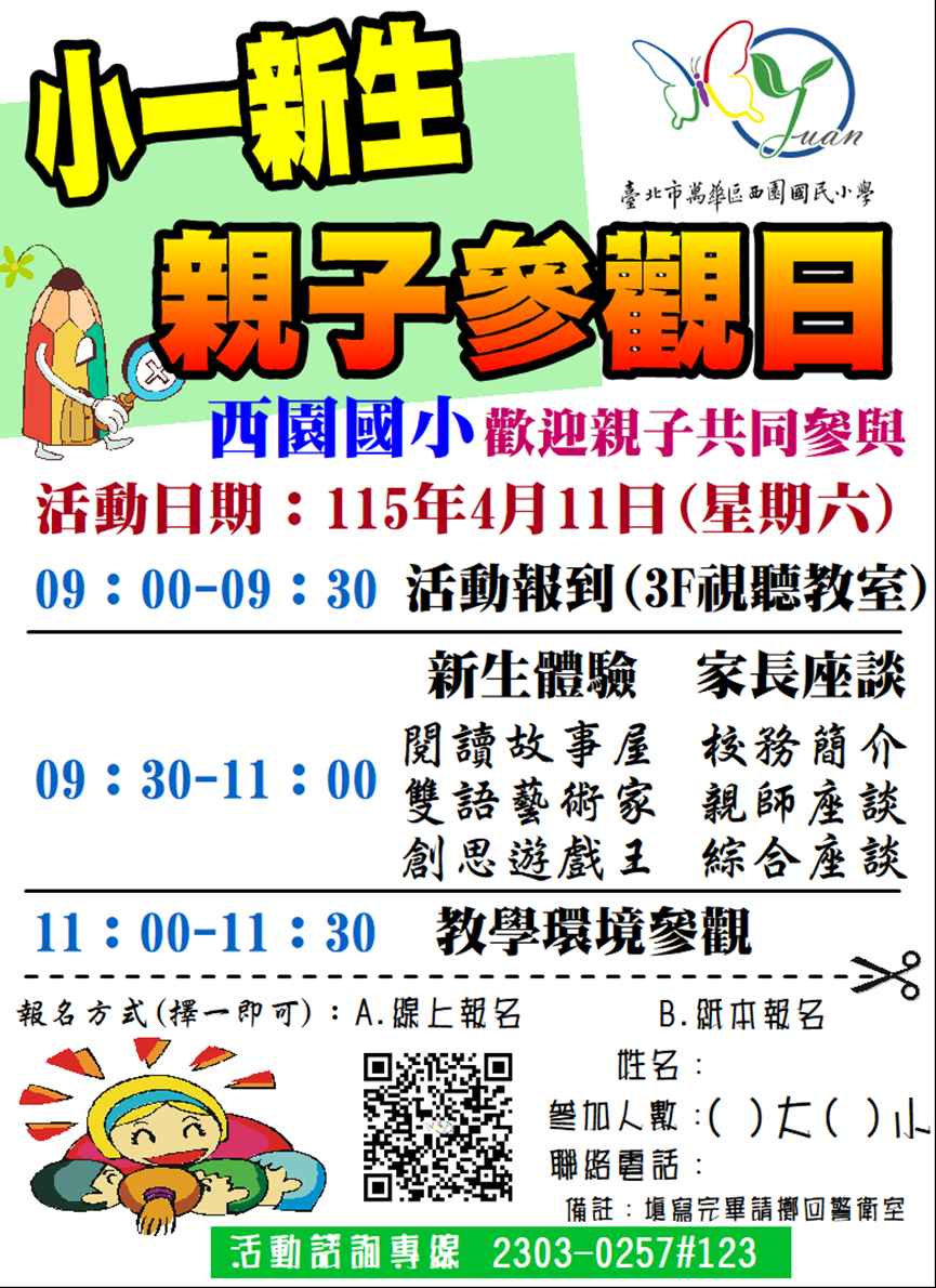 我們專屬為小一新生辦理「新生體驗」,歡迎所有小一親子撥空參加,一起認識西園的課程優勢以及環境規劃